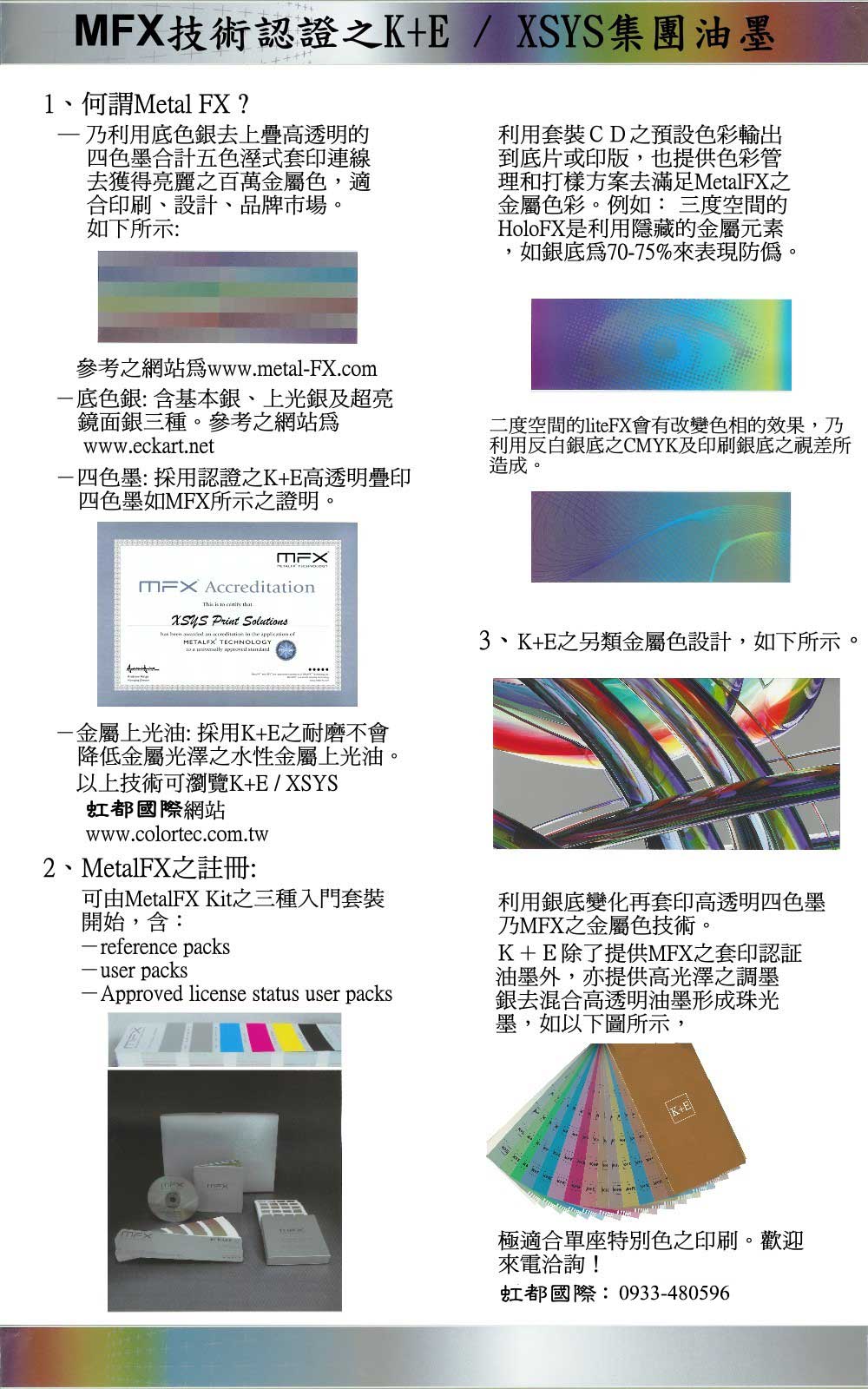 特殊印刷,機密油墨,金屬墨印刷,金屬墨打底印刷,mfx金屬印刷,專業諮詢各種印刷疑難雜症.www.colortec.com.tw